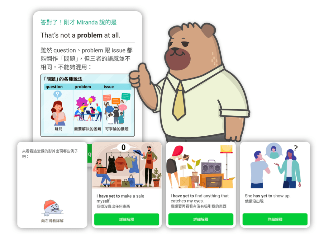 Seymour 每天只花你 10–15 分鐘,針對一個學習重點,包括文法、用法、諺語、詞彙,在通勤或休息滑手機的時間內就能上完。日積月累下,你會發現你的英文基礎不知不覺地鞏固起來了。